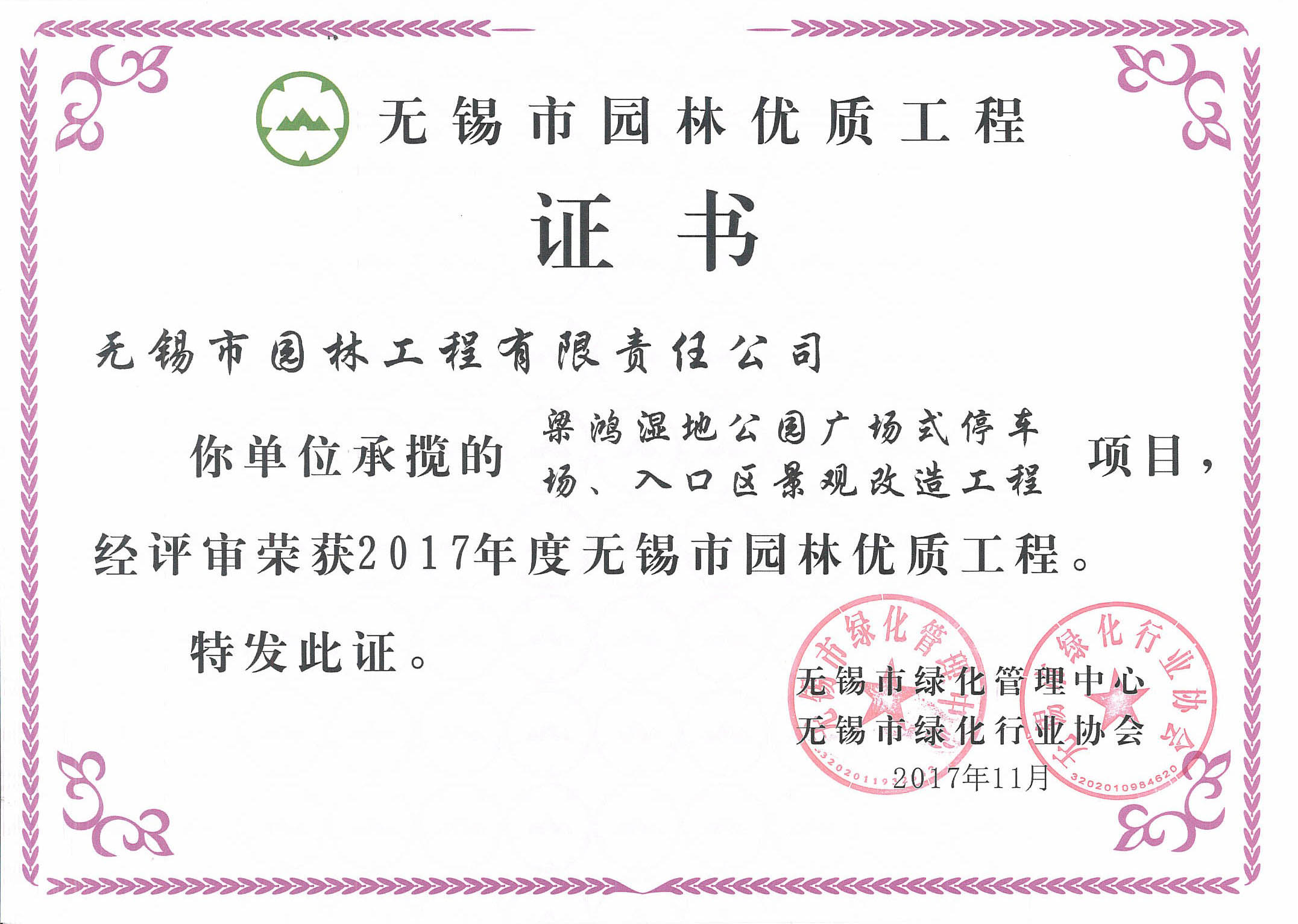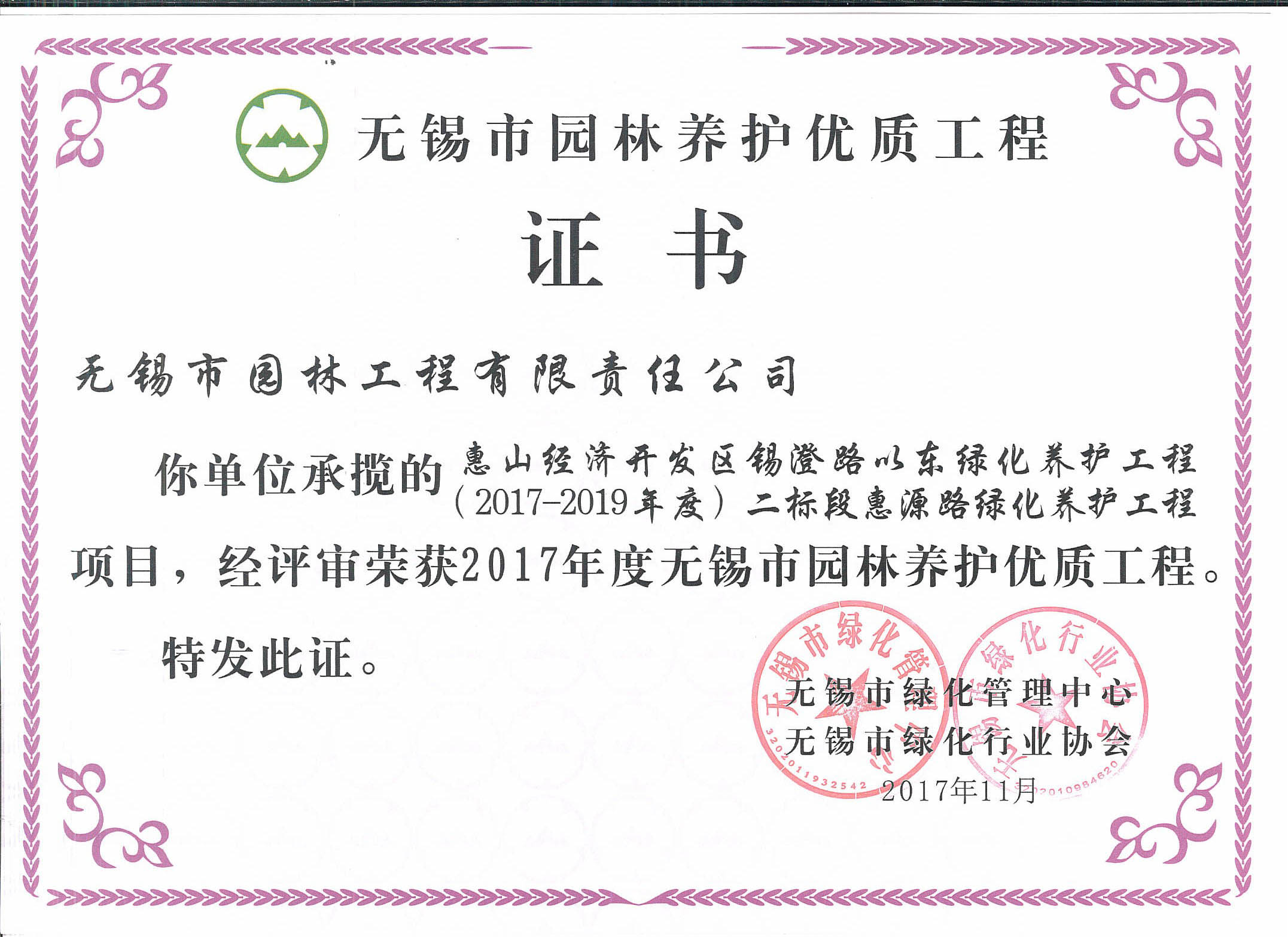 2016揚子杯——無錫地鐵1號線沿線景觀綠化工程三標