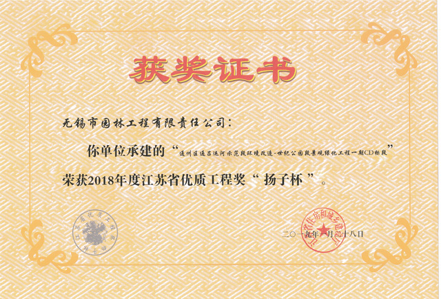 2018揚子杯——通州區(qū)通呂運河示范段環(huán)境改造-世紀公園段景觀綠化工程一期CD標段